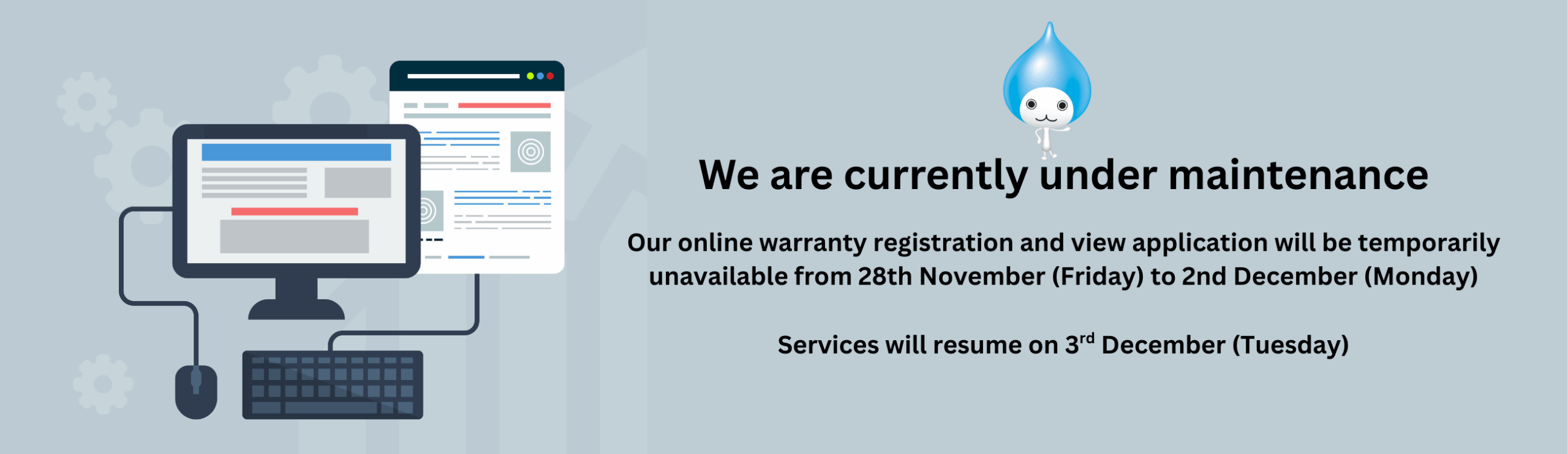 Our online warranty registration and application viewing services will be unavailable from 28 November to 2 December due to scheduled system maintenance.